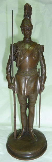 celui là a du connaître la guerre... Il est tordu, il lui manque ses armes et la patine est manquante.